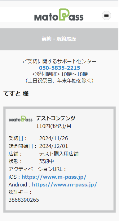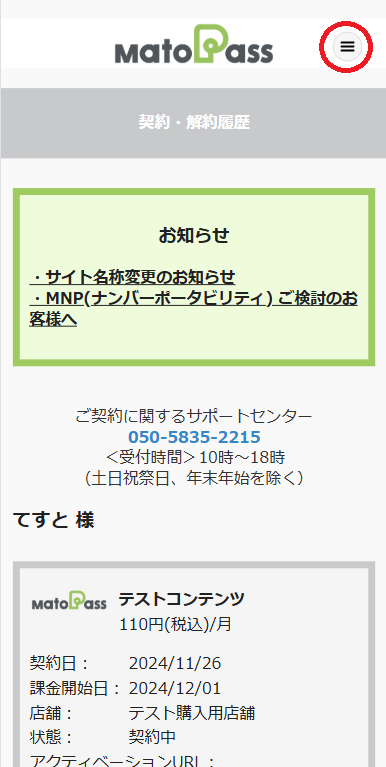 マイページから確認ができます。