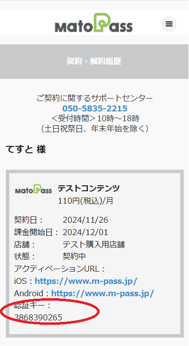 マイページから確認できます。