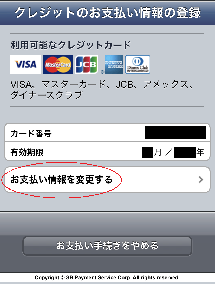 5.「お支払い情報を変更する」を選択